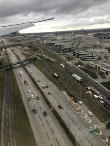 Die Aussicht über Montréal war aber klasse, und ich habe das erste Mal diese typisch nordamerikanischen Wohnsiedlungen gesehen. Eine lange Straße, links und rechts überall Einfamilienhäuser in demselben Bautyp. Kurz bevor wir gelandet sind, mussten wir nochmal über einen Highway fliegen, der gefühlt 20 Meter unter uns war… Direkt hinter dem Highway war dann auch schon die Landebahn, das war echt ziemlich knapp bemessen…