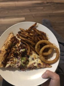 Meine Gastfamlie hat am Freitag Abend Pizza bestellt und hat mich gefragt, ob ich mitessen würde. Turns out: Die Pizza hier ist sehr… Amerikanisch… : ) Auf der Pizza waren einfach Gehacktes, Bacon und Saure Gurken drauf. Und Zwiebeln. Viele Zwiebeln. Anscheinend hat jede Nation eine andere Art Pizza zu machen, aber ich muss sagen ich bin mehr ein Fan von der deutschen Magherita….
