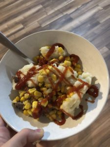 Gestern habe ich zum Abendessen Pâté chinois gegessen – ein typisches Gericht aus Québec. Im Wesentlichen besteht es aus Kartoffelpüree, Hackfleisch, Mais und oder Bohnen (meine Gastbrüder machen noch eine riesige Ladung Ketchup drauf…). Ich muss meinen Gastbrüdern recht geben, mit Ketchup schmeckt das wirklich gut….