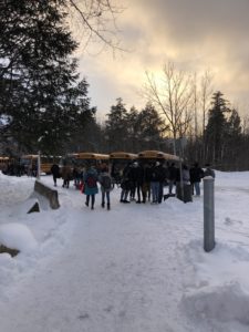 Am Montag hatte ich dann wieder (seit langem) einen Schultag in meiner High School. Das hieß: Um sechs Uhr aufstehen, anderthalb Stunden Busfahren (ja, hier hat das Distance Learning schon seine Vorteile…). Im Bus habe ich dann (wie immer) geschlafen, aber als ich aufgewacht bin, waren mein Schal, meine Jacke und meine Haare am Busfenster festgefroren… (Notiz an mich selbst: Extrem kaltes Fenster und warme Jacke vertragen sich nicht!).